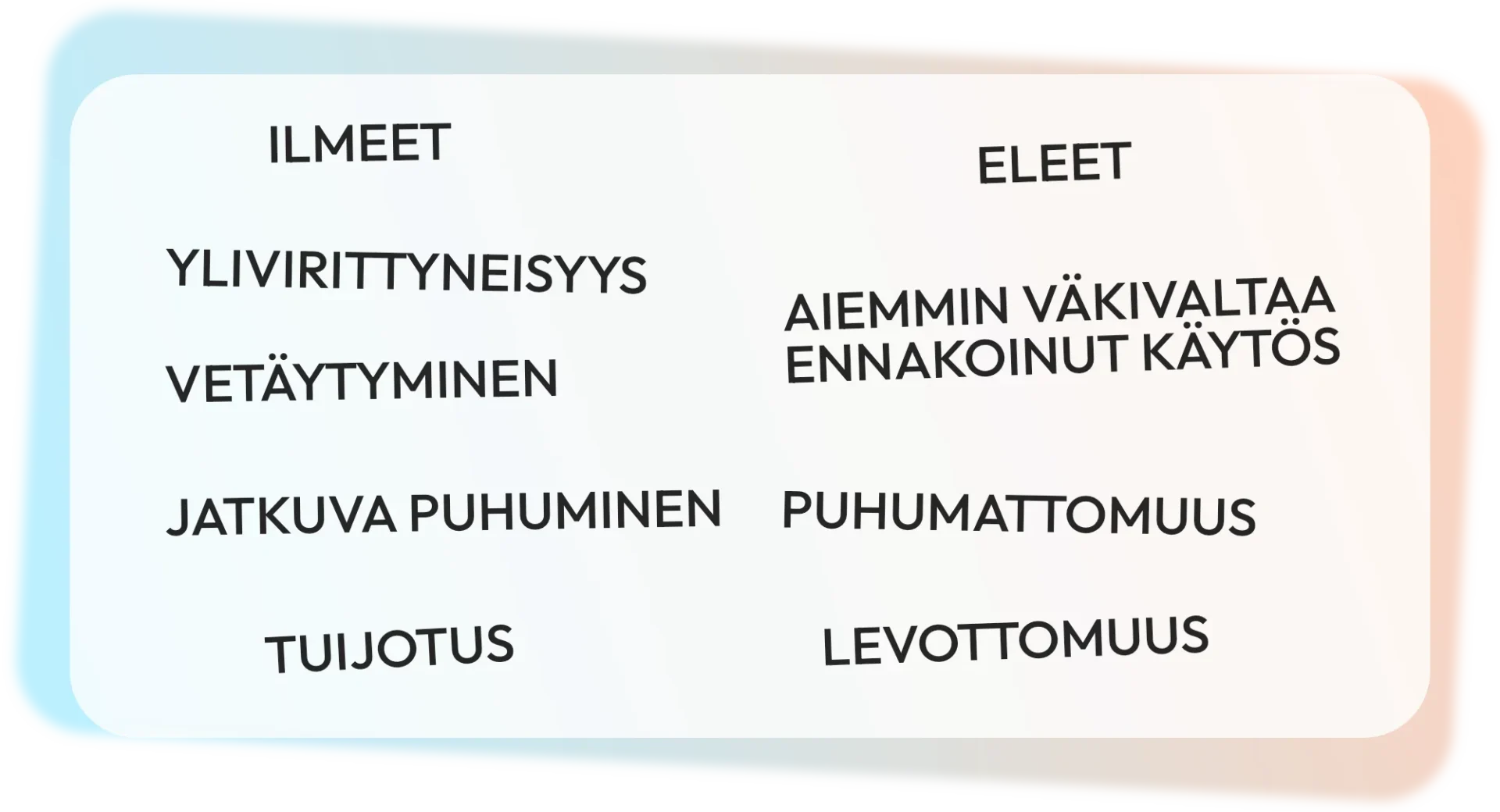 AVEKKI-koulutukset sopivat kaikille työyhteisöille, joissa kohdataan haastavia asiakastilanteita, kuten sosiaali- ja terveysalalla, opetuksessa ja varhaiskasvatuksessa.